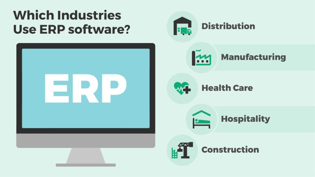 - Industries such as distribution, manufacturing, healthcare, hospitality, and construction rely on ERP for various functions like inventory management, workforce coordination, and financial control, making it essential for profitable scaling and business optimization.