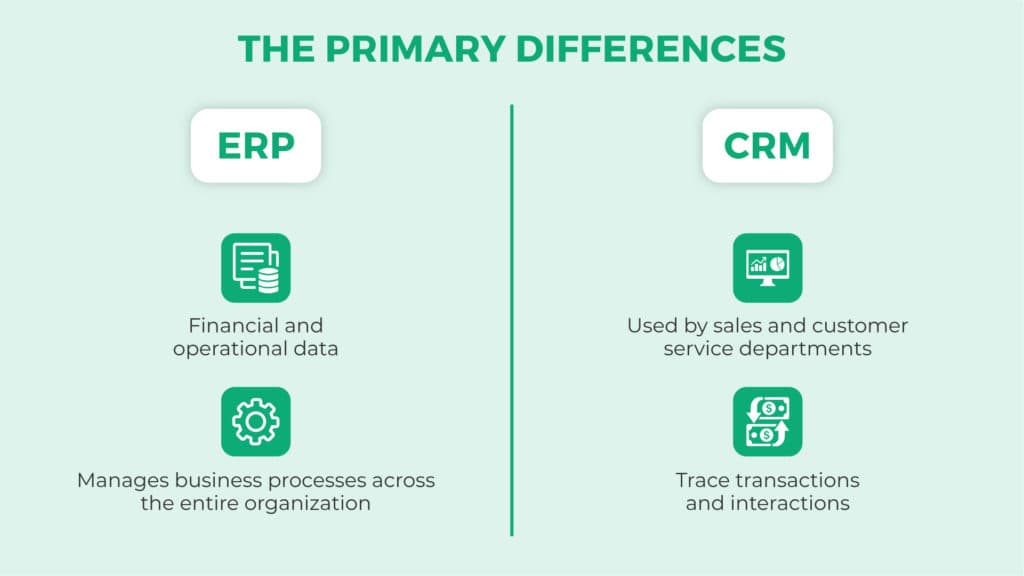 ERP software connects financial and operational data and systems to a central database, while a CRM manages only customer relationships and their interactions with a business. In this article, we’ll unpack the differences between ERP and CRM software, as well as mention some benefits, to help you determine which is the best option for your business.